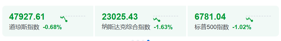 【导读】美联储前景不明朗,股市下跌 大家好,今晚继续关注海外市场的表现,美股走势不大平静! 美股下跌 11月13日晚间,美股三大指数跳水下跌,道指跌约300点,纳指跌超1.5%,标普500指数跌约1%。 消息面上,美联储迎来一个利空消息。 分析师表示,随着政府重新启动、经济数据的"印刷机"重新开动,未来几周市场出现一些震荡也不足为奇。尽管仍然预计12月会降息,但 分析师指出,此次数据"黑屏"也给高度依赖数据的美联储带来挑战,加剧了投资者对降息前景的悲观情绪。 自上一次美联储会议以来,市场对12月再次降息的预期从几乎"板上钉钉"降至如今的摇摆状态。 克利夫兰联储主席Beth Hammack在接受采访时表示,在劳动力市场走软的背景下,她仍将重点放在物价稳定上,并强调美联储实现2%通 胀目标至关重要。另一方面,她在旧金山的同僚Mary Daly则称,现在还为时过早,无法决定决策者是否应在12月降息。 在此之前一天,波士顿联储主席Susan Collins表示,在经济增长仍然强劲、而这可能放缓或阻碍通胀降温进程的情况下,她倾向于维持利 率不变。 分析师表示,Collins本周明确反对12月降息的表态,让他对鲍威尔如何 ...