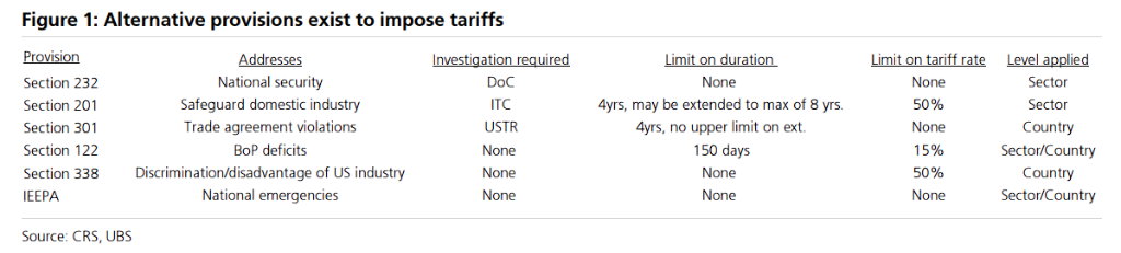如果对等关税被推翻,瑞银称,不要指望关税会消失,特朗普的B计划已准备好。 据央视新闻消息,当地时间11月5日,美国最高法院审议特朗普全面关税政策的合法性并听取口头辩论。据华尔街见闻文章,此前,联邦上诉法院 曾裁定,特朗普实施多项对等关税措施超越了总统的紧急权力范围,此次最高法院的审理正是针对下级法院裁决的上诉。 11月14日,据追风交易台消息,瑞银在最新报告中称,即使美国最高法院裁定当前通过《国际紧急经济权力法》(IEEPA)征收的"对等关税"非 法,政府也已准备好一套"B计划"工具箱,能够迅速重建大部分关税壁垒。 报告称,若IEEPA关税被推翻,美国加权平均关税税率(WATR)将从13.6%骤降至7.2%。但这只是暂时现象。通过启动《1974年贸易法》的第 122条和第301条等备用授权,预计税率能够迅速恢复至11.8%-12.6%的水平,与当前相差无几。 关税根基动摇:IEEPA授权面临最高法院挑战 当前美国政府关税政策的基石之一——《国际紧急经济权力法》(IEEPA)正面临最高法院的司法审查。瑞银称,法院多数法官对该法案用于征 收关税的合法性持怀疑态度。 如果法院在2026年初做出不利于政府的裁决,那么 ...