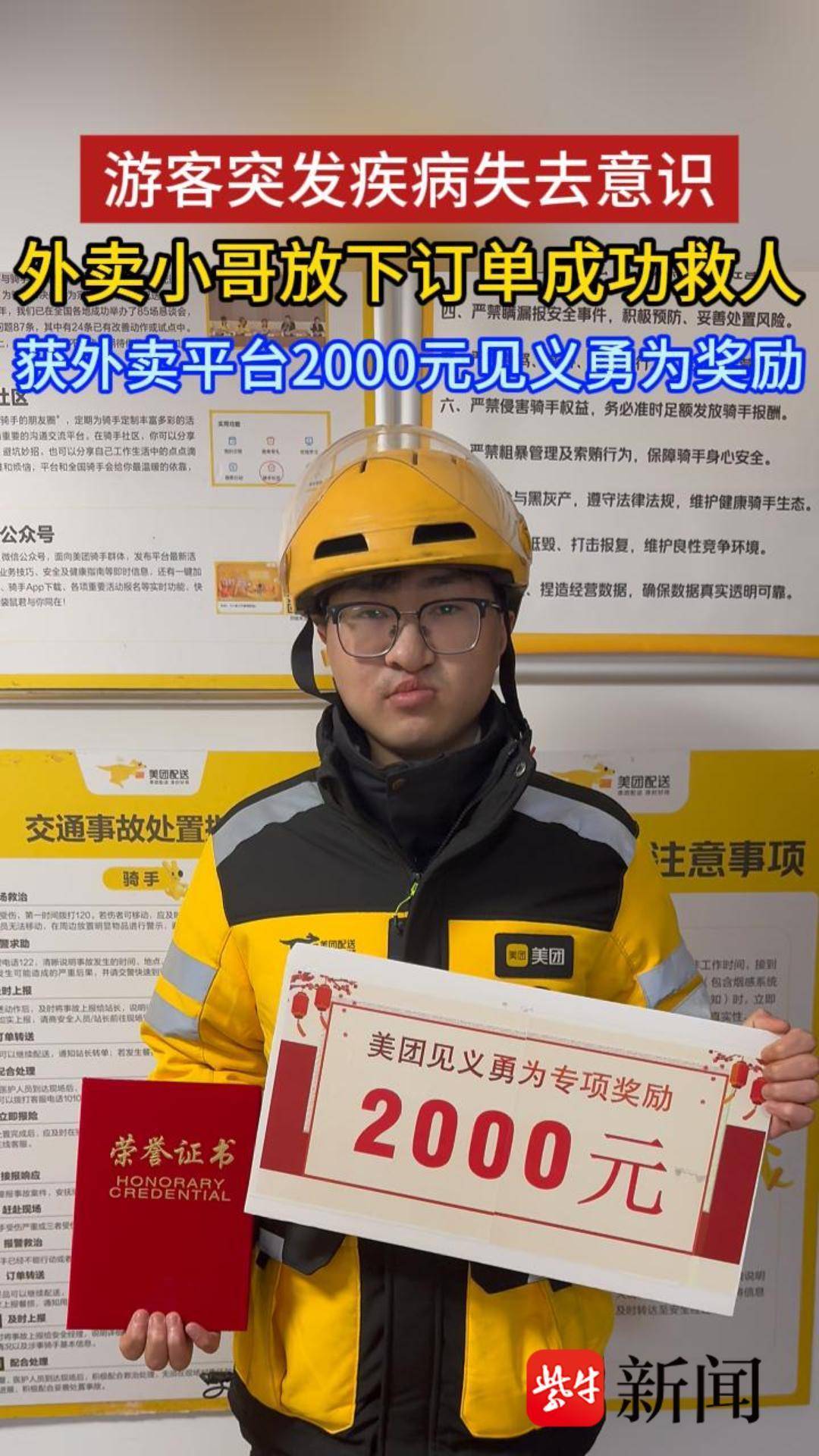 放下订单成功施救心搏骤停游客的外卖骑手获平台“先锋骑手”称号