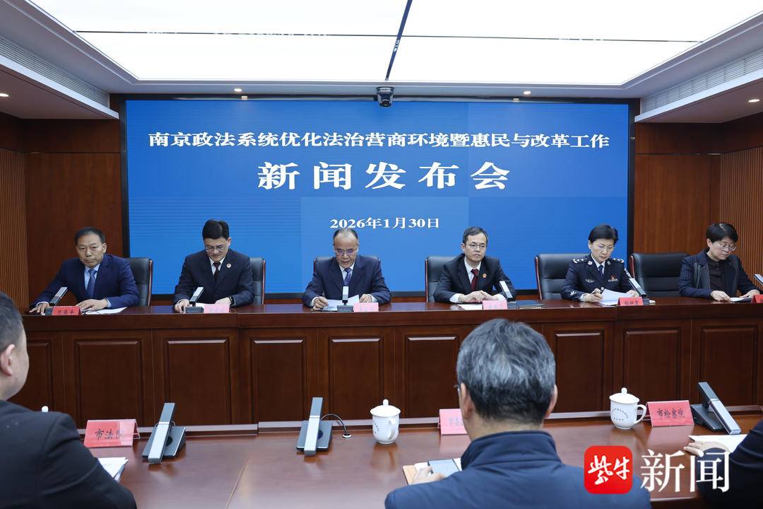 2026年1月30日下午,南京市政法系统优化法治营商环境暨惠民与改革工作新闻发布会召开,发布2025年全市政法系统优化法治营商环境、政法惠民和司 法改革举措成效。扬子晚报/紫牛新闻了解到,一系列政法惠民与改革举措为高质量发展注入强劲法治动能。 新闻发布会现场 2025年南京政法系统牵头开展2次法治化营商环境专项调度、7次政法改革调度及4次规范涉企行政检查调度,统筹推出《政法惠民十件实事司法改革十项 举措》,涵盖助企宜商、证券纠纷化解等20项具体措施。紧扣"科技创新和产业创新融合"需求,叠加出台优化营商环境和助力"拼经济、促发展"双20条举 措、《关于持续优化法治化营商环境的十六条举措》《服务保障打造万亿级软件和信息服务产业十五条举措》,构建全链条制度供给体系。创新推出"宁 捷查"行政检查码系统,出台工业领域AEO制度,全年涉企行政执法检查总量同比压降30%。 聚焦群众急难愁盼,南京政法系统构建"线上+线下"惠民服务网络,在23个园区设立"园区检察官工作站",持续开展"百名法官进企业""警企会客厅"等活 动,"宁警护企"移动端应用提供"点对点"精准服务。江苏(南京)涉外法律服务中心正式启用,5000平方米服务空 ...