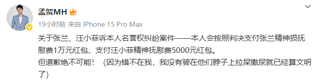 汪小菲名誉维权胜诉孟贺拒绝道歉,此前麻六记被判赔760万余元