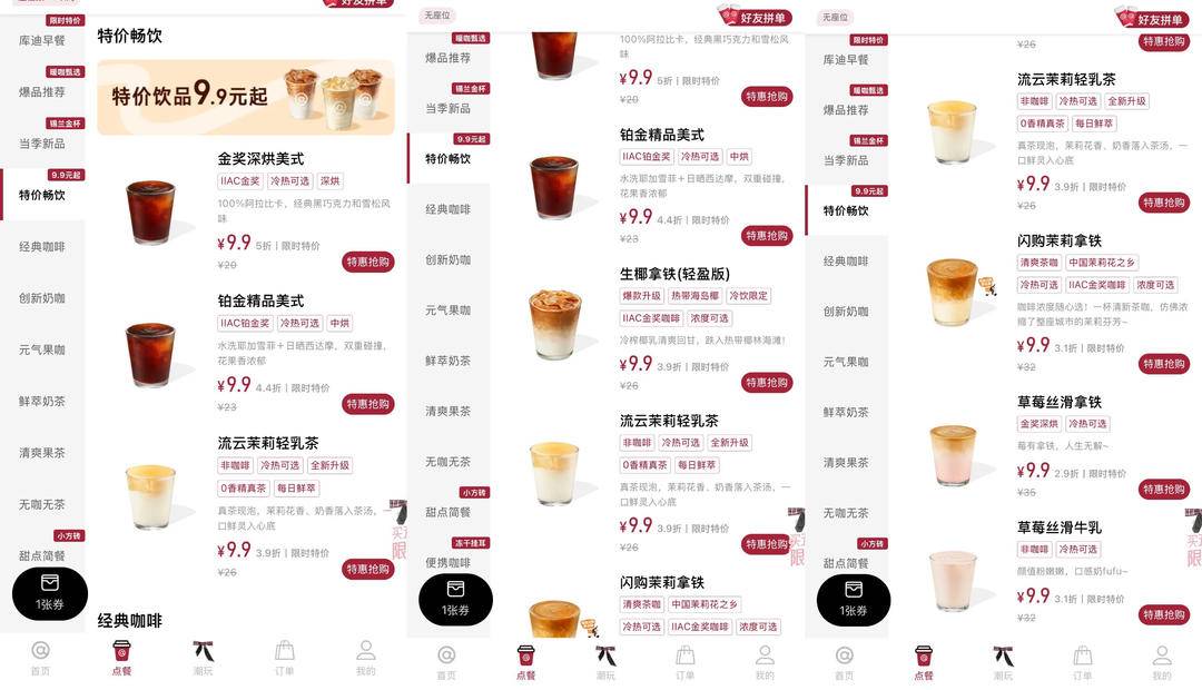 库迪全场9.9元真取消了?设“特价畅饮”专区饮品保留9.9元起优惠