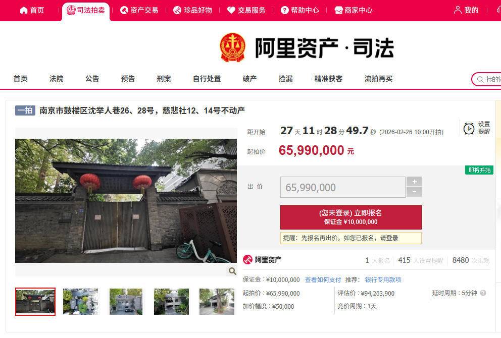 近日,位于南京市鼓楼区沈举人巷的"张治中公馆"再次被南京市鼓楼区人民法院"上架"阿里资产平台,将于春节后进行拍卖。此前,这处房产曾多次被该 院"上架",但均未能完成拍卖。此次拍卖的起拍价在市场评估价的基础上"直降"2827万余元,目前已有1人报名参拍。 拍卖标的调查情况表显示,沈举人巷26、28号(慈悲社12、14号)地址上原建设的房屋系民国建筑,曾为张治中公馆。现产权人于2008年对原建筑拆除后进 行了重建,并取得了新的不动产权登记证书。南京市人民政府依据《南京市重要近现代建筑和近现代建筑风貌保护区保护条例》认定该建筑为南京市重要 近现代建筑,编号为2012056,但目前该条例已被废止。 校对盛媛媛 此前,张治中公馆曾多次被鼓楼法院上架司法拍卖平台,但由于各种原因均未能拍出。2020年1月,该院已7178万元起拍价"上架"这处房产,曾引发6万多 人次"围观"。但之后被法院以"需完善相关手续"为由暂缓拍卖。 2022年2月,张治中公馆的拍卖因无人报名而流拍,那次拍卖的起拍价定为9410万元。 离现在最近的一次"上架"在2025年4月。当时的起拍价与这次相同,定为6599万元,后因当事人提出执行异议,被法院暂缓 ...