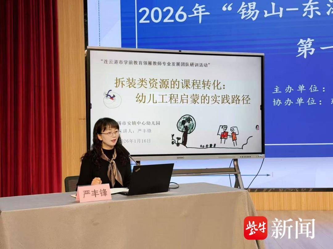 为深入贯彻江苏省南北结对帮扶合作战略,深化连云港、无锡两地学前教育协同发展,提升东海县学前教育教师课程资源开发利用能力,2026年1月16 日,2026年"锡山-东海"南北教育结对合作第一次活动在东海县幼儿园滨河分园成功举办。 本次活动以"聚焦课程资源,赋能高质量发展"为主题,采用"环境观摩+课堂展示+专家讲座+分组研讨"的多元形式,构建理论与实践深度融合的研修平 台。上午,东海县富国路幼儿园谢娟、东海县第三幼儿园陈晨、东海县幼儿园谢亚璇分别立足幼儿年龄特点进行优秀教育活动展示,将课程资源与集体活 动深度结合,展现扎实的教学功底与创新的育人思路。集体活动展示后,锡山区幼教学科带头人、无锡市安镇中心幼儿园严丰锋园长带来专题讲座《拆装 类资源的课程转化:幼儿工程启蒙的实践路径》,从资源筛选、课程设计、实践落地等维度分享了可操作的课程资源开发经验。 山海文化元素转化为游戏活动阶段 报告 东 海县幼儿园 __ 熊 方玲 2026年1月16日 ** 新闻 当日下午,东海县幼儿园熊方玲以《山海文化元素转化为游戏活动阶段工作报告》为题,汇报了本土文化资源课程化的阶段性成果;无锡市梅村街道中心 幼儿园曹玉兰园长围绕《互动育人 ...