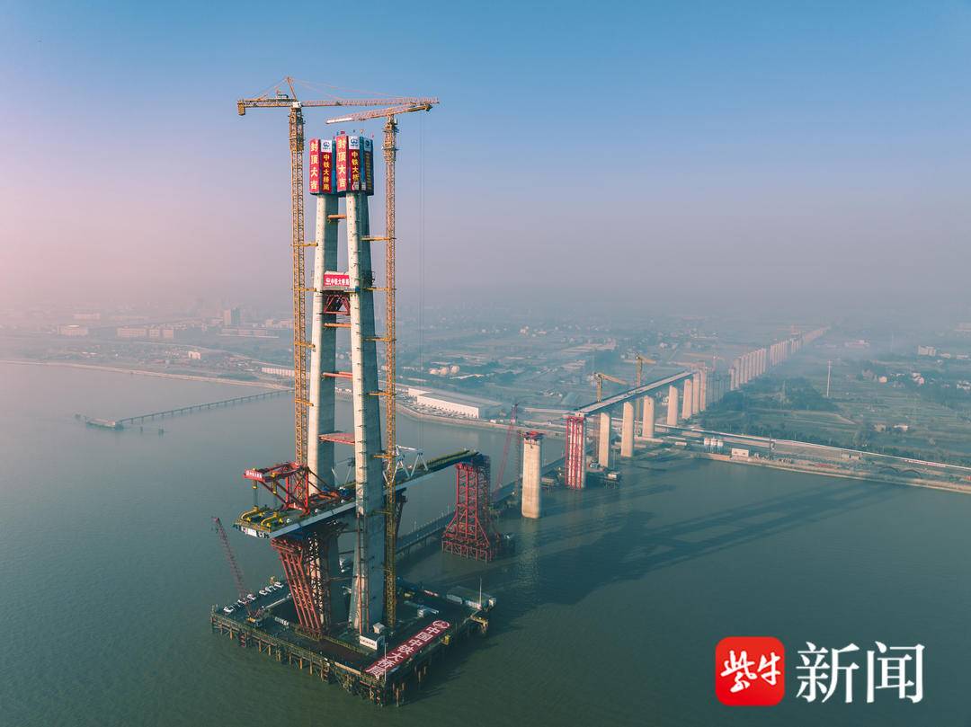 世界最长跨海铁路大桥!通甬高铁杭州湾跨海铁路大桥首座主塔封顶