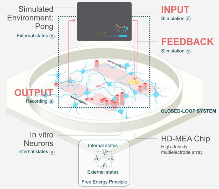 神经元如何"看见"和"移动"? 要理解这项实验的精妙之处,首先需要了解科学家是如何让这些"无眼无手"的神经元与游戏世界互动 的。 实验的核心是一个高密度微电极阵列(HD-MEA)——一块布满数千个微型电极的硅芯片。研究人员将 从小鼠胚胎皮层或人类诱导多能干细胞(hiPSCs)分化而来的神经元接种在这块芯片上。几天后,这些 神经元彼此连接,形成一个自发放电、具有基本网络结构的微型"脑组织"。 【文/观察者网专栏作者 心智观察所】 近年来,随着大语言模型的爆发式发展和生成式人工智能的广泛应用,人们一度认为硅基计算——即由 晶体管、芯片和算法构成的传统人工智能——已经牢牢锁定了通往未来的道路。然而,就在AI系统变 得越来越庞大、能耗越来越高、对数据依赖越来越强的同时,一个曾被边缘化的疑问重新浮出水面:智 能是否必须建立在硅片之上?有没有可能,真正的下一代智能,其根基不在金属与电流,而在活生生的 细胞与突触之中? 这一问题并非空想。在全球多个前沿实验室里,科学家正尝试将活体神经元与电子设备深度融合,构建 一种被称为"合成生物智能"(Synthetic Biological Intelligence)的新范式。它不依赖 ...