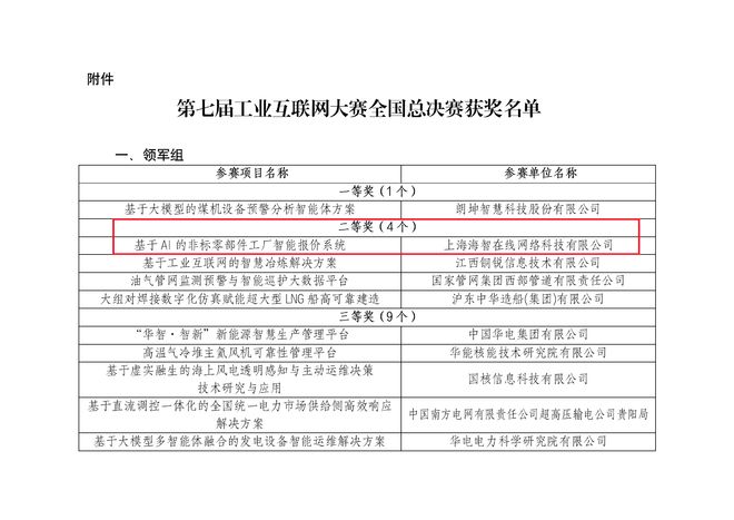 2025 年冬季,12 月的寒意未能冷却持续升温的 AI 热潮。 OpenAI 和 Google 披露,ChatGPT 拥有约 7 亿周活跃用户,Gemini App 月度使用用户超过 6.5 亿。与此同时,斯坦福大学 HAI 发布的 《AI Index 2025》显示,2024 年全球生成式 AI 私人投资达到 339亿美元;PitchBook 数据则表明,同年 全球风险投资中每 3 美元就有 1 美元投向 AI 初创公司。然而,在繁荣热闹背后,一个越来越清晰的共 识正在形成:比模型更难复制的是数据,而比数据更难获取的是真实产业场景下的应用经验。 海智在线正是看到了这个本质,才基于十年的数据积累研发智能报价工具。它的核心价值不在于把报 价"生成得更快",而在于把影响报价的关键要素从黑箱中抽离出来,变成可解释、可追溯、可复盘的数 字化资产,让供需双方第一次能围绕同一张"成本地图"讨论问题。 正是在这样的背景下,由国家工业信息安全发展研究中心主办的第七届工业互联网大赛全国总决赛在北 京落下帷幕。领军组的获奖名单里,项目大多来自央国企、省属国企及科研院所,集中于煤炭设备预 警、油气管网监测、大型船舶建造仿真等核心 ...