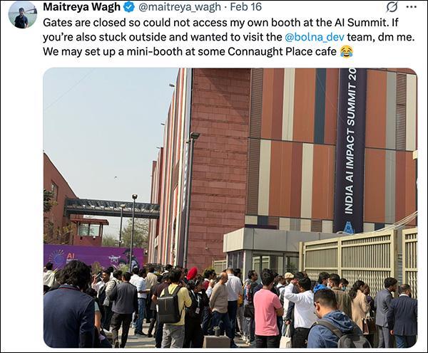 参展商在社媒平台上抱怨无法进入自家展台。 社媒 可穿戴人工智能初创公司NeoSapiens创始人亚达夫在社媒平台X上讽刺道,公司在差旅、住宿和展位上 投入巨大,"却看到我们的可穿戴设备在高度安全区内消失"。 【文/观察者网 王一】当地时间2月16日,为期五天的印度人工智能影响力峰会拉开帷幕。然而,据英 国广播公司(BBC)、路透社等外媒报道,这场意在彰显印度在人工智能(AI)领域挑战中美科技巨 头雄心的盛会,首日就因组织混乱、后勤不畅、展台产品被盗而遭到与会者吐槽,网上铺天盖地一片批 评声。 据报道,此次峰会以"人、进步、地球"为主题,由印度电子和信息技术部主办,被宣传为全球南方举办 的首个、有史以来规模最大的AI峰会。19日,印度总理莫迪将在峰会上发表讲话。 预计共有来自100多个国家的代表参加峰会,包括OpenAI首席执行官萨姆·奥尔特曼、谷歌公司首席执行 官桑达尔·皮查伊等科技企业高管。英伟达首席执行官黄仁勋原计划赴新德里参会,但最终因"不可避 免"的原因无法出席。 但BBC称,AI峰会首日就因新德里国际会展中心拥挤不堪、管理不善而饱受诟病。16日下午,社交媒 体上充斥着创始人、参展商和代表们的投诉,他 ...