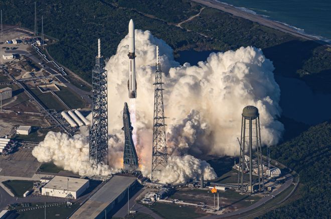 这是"新格伦"火箭第二次发射,也是其第一级首次实现海上回收。此次发射成功,使得蓝色起源成为继 SpaceX之后,全球第二家掌握火箭回收技术的公司。 11月14日消息,美国东部时间13日15时55分(北京时间14日4时55分),杰夫-贝佐斯旗下美国蓝色起源 公司可重复使用重型运载火箭"新格伦"在佛罗里达州点火升空。 升空后火箭一、二级分离,第一级按计划降落在大西洋上的回收船平台上。第二级搭载着NASA的火星 探测器继续飞向预定轨道。 回收后的画面 这或许让蓝色起源有能力与 SpaceX 展开竞争,目前后者凭借猎鹰 9 号、猎鹰重型和星舰火箭主导着全 球发射市场。这一发射也引来了同行 SpaceX 的祝贺,SpaceX 的 CEO 格温·肖特维尔(Gwynne Shotwell)在 X 上发帖表示"太棒了",SpaceX 创始人马斯克随后也表达了自己的祝贺。 马斯克和SpaceX的CEO 格温·肖特维尔发来的贺电 "新格伦"火箭以首位绕地球轨道飞行的美国人约翰·格伦命名,采用两级设计,直径7米,高达98米,整 流罩宽近7米,起飞推力为1750吨。第一级近地轨道运力45吨,地球同步转移轨道运力超过13吨。 火箭第一 ...