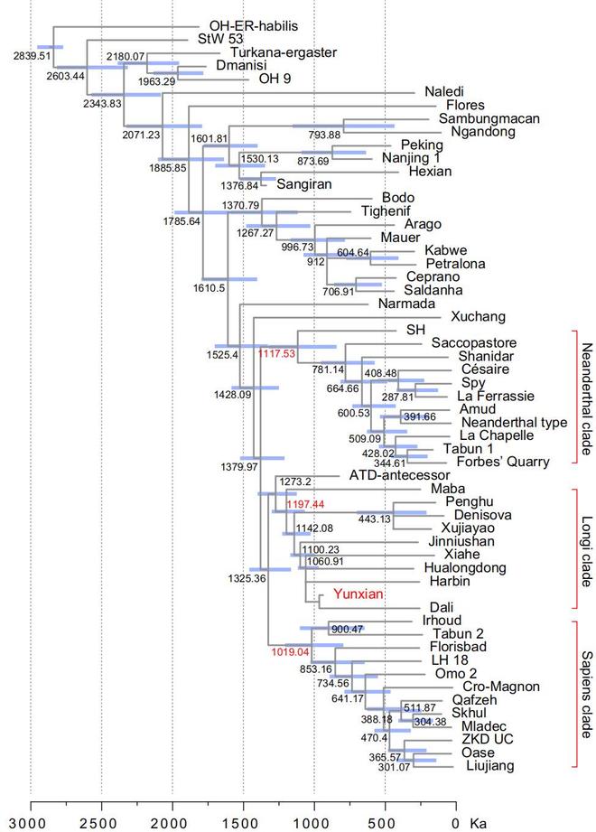Core Insights - The research led by Ni Xijun reconstructs the skull fossil of "Yunxian Man 2" and establishes a new evolutionary tree for the genus Homo, shedding light on the origins of the Dragon Man and Denisovans [1][8]. Group 1: Relationship with Modern Humans - The Yunxian Man is closely related to modern humans, sharing a common ancestor approximately 1 million years ago [2][3]. - The Dragon Man branch is more closely related to modern humans than the Neanderthal branch, which was previously thought to be a sister group to Homo sapiens [3][8]. Group 2: Classification of Denisovans - Denisovans are classified as part of the Dragon Man branch, although they are often considered an independent group due to limited fossil evidence [4][5]. - The classification of Denisovans remains debated, as they lack a formally recognized species name and are primarily identified through DNA fragments [4][5]. Group 3: Methodology and Technological Advances - The study introduces a novel approach to fossil reconstruction, focusing on assessing the potential inaccuracies in the reconstruction process rather than solely on precision [9][13]. - A statistical method was employed to analyze the stability of the evolutionary tree despite potential errors in the reconstruction, demonstrating a significant technical breakthrough [13][14]. Group 4: Fossil Significance - The age of the Yunxian Man fossil, estimated at 1 million years, is crucial for understanding the divergence of Homo sapiens from other branches [8][9]. - The research emphasizes the rarity of well-preserved fossils from this time period, making the Yunxian Man a unique specimen for evolutionary studies [8][9]. Group 5: Future Research Directions - The research team is open to further analysis and validation of their findings by other researchers using their publicly available database [32][34]. - There is potential for applying the new methodologies to other species, although challenges remain in reconstructing fossils that lack extensive data [30][31].