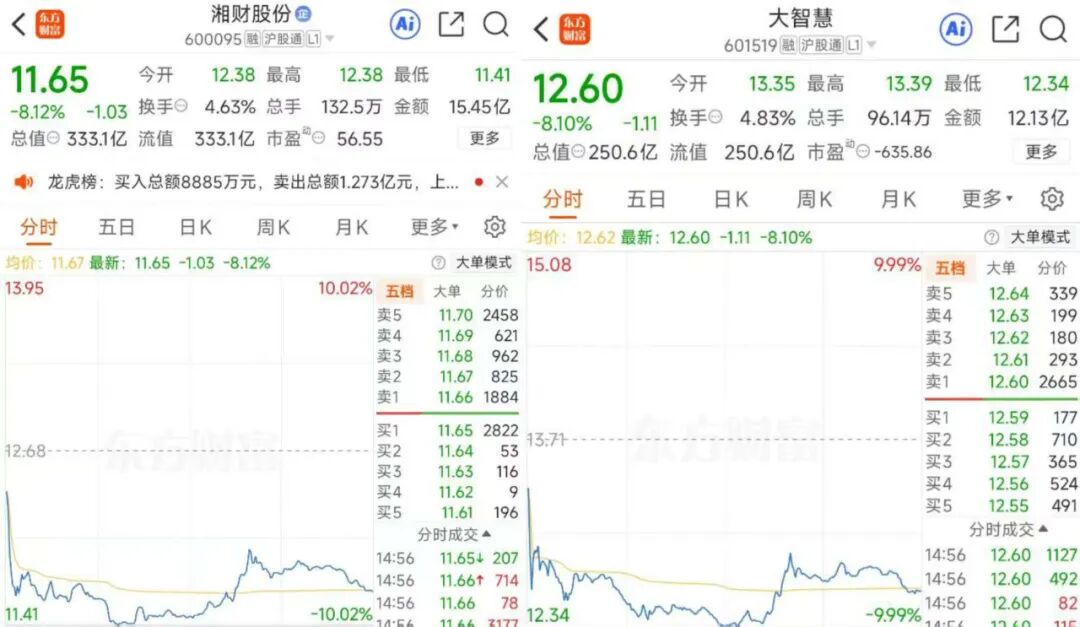 遭自然人起诉,大智慧与湘财股份股价跳水,市值合计蒸发超50亿