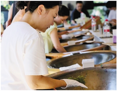 集训场上的"铁砂掌",从来不是一蹴而就。杭州竺顶茶叶有限公司集训点负责人朱牝莺的朋友圈 里,一张"黑乎乎的手心贴满创可贴"的照片,道尽传承的艰辛;胡正荣大师工作室集训点的视频中,学 员手掌磨出水泡,同伴帮忙挑破后仍坚持练习——这便是青年茶人"宝剑锋从磨砺出"的生动注脚。 本次集训由西湖风景名胜区牵头,联合多部门协同推进,聚焦核心产区炒制技能提升。培训内容兼 顾传统与创新,既深耕"抓、推、扣、磨"等十大非遗炒制手法的实操训练,又融入理论教学与《杭州市 西湖龙井茶保护管理条例》普法宣传。部分集训点创新增设"机手结合"教学,让古老技艺精准对接现代 茶产业需求。 自2020年起,该集训已连续培育千余名青年茶人,多名学员在省市级赛事中脱颖而出,构建起"政 府主导+社会参与"的良性生态。如今,越来越多"茶二代""茶三代"返乡接力,以年轻的手掌承接手工炒 制的"源头活水"。当青春匠心遇见千年茶香,西湖龙井这一非遗技艺必将在时代浪潮中永葆鲜活,让西 湖茶香穿越时光,飘向更广阔的未来。 从媒体人转型茶师的胡丹青,如今是杭州正浩茶叶有限公司集训点的"明星师傅"。连续多年参训的 她,实现了从"徒弟"到"导师"的蜕变,把"口口相传" ...