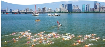 8月3日上午,2025横渡钱塘江活动暨钱塘江公开水域挑战赛,在杭州奥体中心码头与城市阳台之间 的壮阔江面燃情启幕。来自全国各地以及日本、法国等国家的参赛选手劈波斩浪,由南向北横渡钱塘 江。 赛前,暖场节目的表演者在水雾中划出一道道灵动弧线,手中巨幅红绸迎风展开——"预祝杭州 队'浙BA'勇冠三军!""祝2025横渡钱塘江圆满成功!"双愿同祈,引发两岸观众欢呼如潮。 横渡钱塘江作为杭州标志性全民健身品牌,今年报名人数首破万人大关,最终共有3527名选手参 赛,分别为男性选手2632名,女性选手895名,其中省外选手达955人,占比27%。 获得本次比赛精英组第一名的是一名大三学生,名叫王昱涵,今年21岁。拿到冠军后,来自上海的 他还和同样是首次体验横渡钱塘江的"民间扣篮王"陈登星合影互动。 今年,所有参赛者中年龄最大的81岁,最小的5岁。大众横渡组不计名次,横渡结束后,选手通过 扫描现场二维码,获取电子完赛证明。该证明不仅记录个人的横渡用时,更支持下载保存,方便分享横 渡佳绩。 赛后,一枚承载钱塘江时代印记的专属纪念奖牌,是献给所有成功泳士的荣耀勋章。牌面精心镌刻 壮丽江景与泳士奋进剪影。它是这场全民盛事赋予参 ...