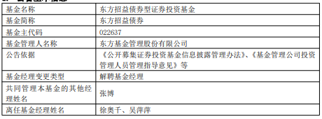 徐奥千与吴萍萍离任东方招益债券 张博管理