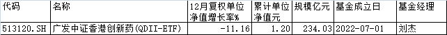 去年12月广发中证香港创新药ETF跌11% 规模138亿元