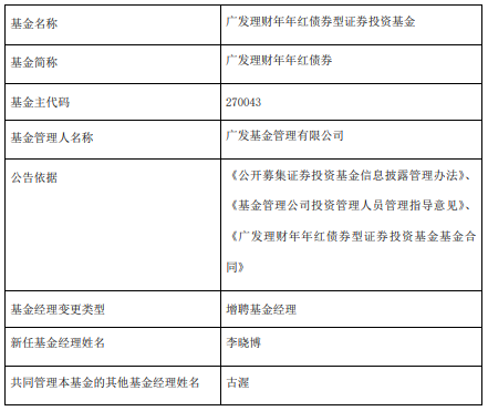 广发理财年年红债券增聘李晓博
