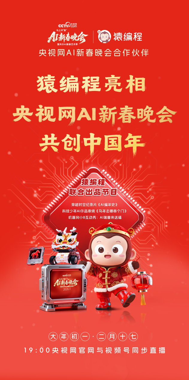 2026央视网AI新春晚会圆满落幕,猿编程上演“AI编年史”