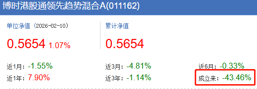 高位成立难解套 博时港股通领先趋势成立5年亏损4成
