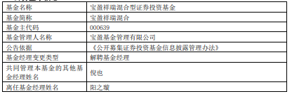 阳之璇离任宝盈祥瑞混合 倪也管理
