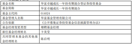 华富卓越成长一年与华富价值增长混合增聘卞美莹