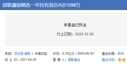 国联鑫锐精选一年持有混合清盘 成立近5年最大盈利31%