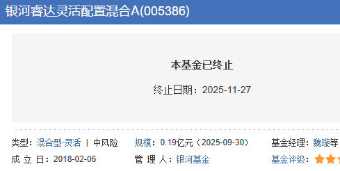 中国经济网北京2月5日讯 昨日,银河基金发布银河睿达灵活配置混合型证券投资基金清算报告。 报告称,银河睿达灵活配置混合型证券投资基金基金合同于2018年2月6日正式生效。根据《基金合同》 及《银河基金管理有限公司关于银河睿达灵活配置混合型证券投资基金基金份额持有人大会表决结果暨决议 生效的公告》,该基金自基金份额持有人大会决议生效公告日的下一日(即2025年11月27日)起进入清算程 序,该基金的最后运作日为2025年11月26日。自该基金基金合同生效日至最后运作日期间,该基金按基金合 同约定正常运作。 | | | | | | | 今年来 近1周 近1月 近6月 近6月 近1年 近2年 近5年 成立来 | | | | | | --- | --- | --- | --- | --- | --- | --- | --- | --- | --- | --- | | 涨幅 | 11.64% | | 0.00% | 0.03% | 12.70% | 11.64% | 17.40% | 14.41% | 18.34% | 93.92% | | 同类平均� 26.17% | | 0.13% | 3.33% | 0.20% ...
