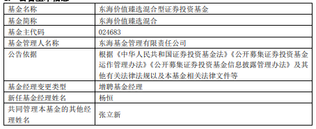 东海价值臻选混合增聘杨恒