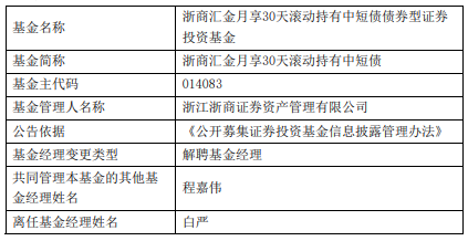 白严离任浙商证券资管旗下7只基金