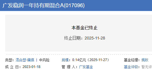 广发稳润一年持有期混合基金清盘 成立3年盈利不足1成