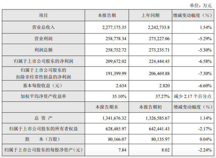 看推文多多留言 有机会获商报君送出的礼品 2月24日晚,厨房小家电龙头企业苏泊尔披露2025年业绩快报。财务数据显示,2025年公司实现营业收入227.72亿元,同比增长1.54%;归属于上市公司股 东的净利润20.97亿元,同比下降6.58%;扣非净利润19.14亿元,同比下降7.30%。值得一提的是,这是苏泊尔自2021年以来首次出现年度归母净利润同比 下滑。 | | | | 单位: 万元 | | --- | --- | --- | --- | | 项目 | 本报告期 | 上年同期 | 增减变动幅度(%) | | 营业总收入 | 2,277,175.35 | 2,242,733.8 | 1.54% | | 营业利润 | 258,778.34 | 273,227.06 | -5.29% | | 利润总额 | 258.752.72 | 273.235.71 | -5 30% | | 归属于上市公司股东的净利润 | 209,672.02 | 224,444,45 | -6.58% | | 归属于上市公司股东的 扣除非经常性损益的净利润 | 191.399.99 | 206.469.88 | -7 30% | | ...