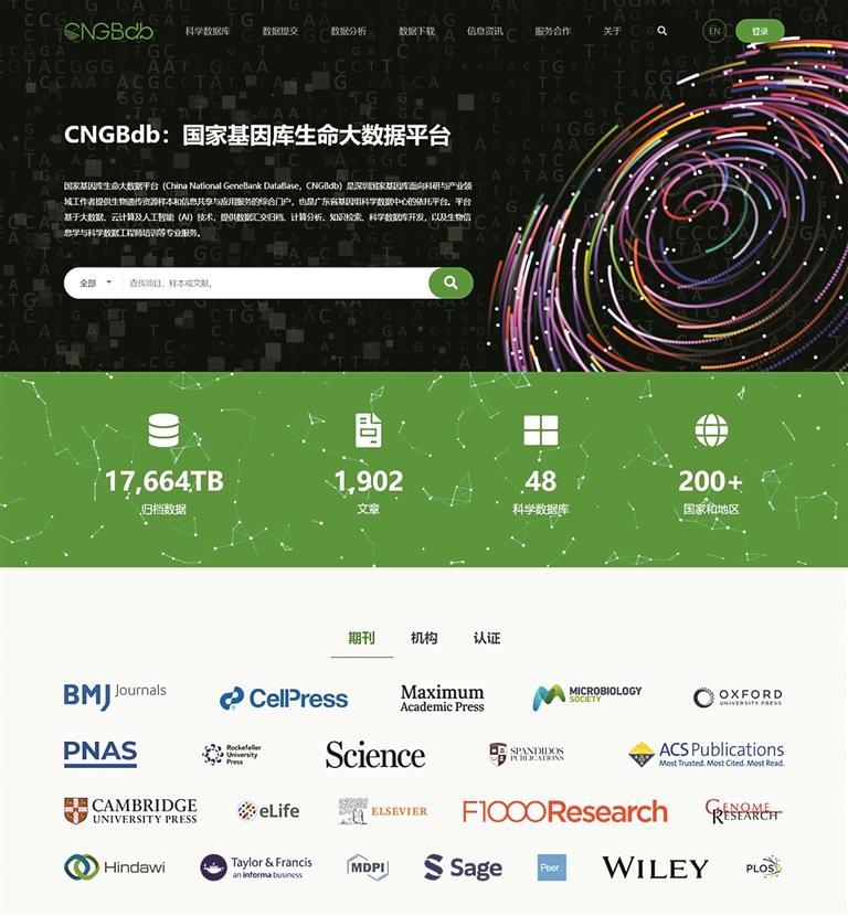 国家基因库生命健康大数据平台。(图片来源:国家基因库) 除了用户自主递交的数据外,该平台还定期备份全球其他重要数据源(如美国国家生物技术信息中心NCBI、 欧洲生物信息研究所EBI等)的公开数据,包括NCBI的基因组装数据等。国家基因库生命大数据平台提供文 献数据、样本数据、基因数据、变异数据等多种数据的互联互通和开放使用。 用户可通过常规数据搜索和专有科学数据库两种方式查找目标数据信息,一是常规数据搜索功能,通过首页 搜索框,使用关键词搜索9大子库中的基因、蛋白、变异等数据信息;二是专有数据,国家基因库生命大数据 平台整理和收录了30余个植物、动物、微生物、疾病等方向的科学数据库,方便相关领域研究者查找和使用 相关数据。 国家基因库相关负责人表示,未来,国家基因库生命大数据平台将以国家政策法规为导向,以数据安全为基 本点,持续提升数据资源建设和数据应用服务力,为全球科研工作者提供更优质、可靠的科学数据服务。 作为我国自主可控的公共核酸序列数据库,数据所有者可通过国家基因库生命大数据平台的序列归档系统递 交数据到国家基因库生命大数据平台进行归档和公开共享。目前,支持原始数据(fastq/bam)、组装数据 ( ...