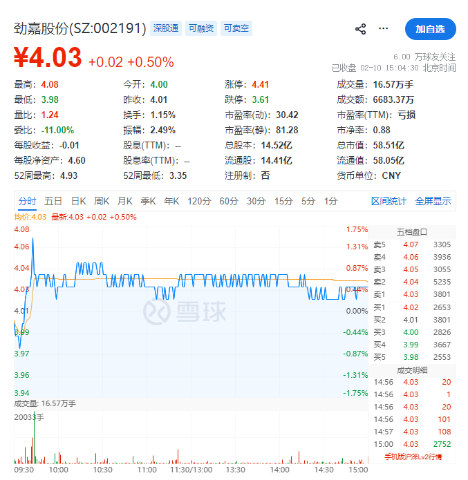 2月10日晚间,深圳劲嘉集团股份有限公司(以下简称"劲嘉股份")公告,公司控股股东深圳市劲嘉创 业投资有限公司(以下简称"劲嘉创投")及实际控制人乔鲁予收到广东省深圳市中级人民法院两份执行 裁定书,涉案金额合计超过17亿元。 二级市场上,截至2月10日收盘,劲嘉股份涨0.5%,报4.03元/股,总市值58.51亿元。 根据公告,此次执行源于广东华兴银行股份有限公司深圳分行申请的两笔贷款强制执行。 第一笔贷款本金为11.39亿元。2023年至2025年间,劲嘉创投与华兴银行深圳分行签订《综合授信额度 合同》,获得贷款11.39亿元,并以1.39亿股劲嘉股份股票作为质押担保,深圳市劲嘉房地产开发有限公 司、深圳劲嘉投资控股有限公司等关联方及乔鲁予提供连带责任担保。因劲嘉创投未能按期还本付息, 深圳市中级人民法院于2026年2月作出〔2026〕粤03执241号执行裁定,查封、冻结相关被执行人财产, 执行标的为12.45亿元及迟延履行利息。 第二笔贷款本金为5亿元。劲嘉创投同样与华兴银行深圳分行签订授信合同,除关联方担保外,还以多 处项目应收账款及股权作为增信措施。该笔贷款同样发生违约,法院裁定执行标的5.46亿元, ...