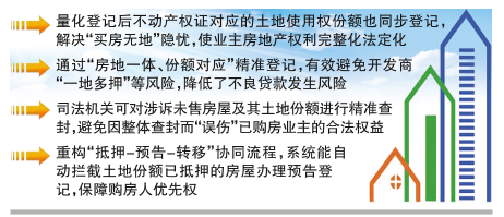 齐鲁晚报.齐鲁壹点赵旭 为从根本上解决不动产登记中长期存在的"房地权利分离""权益边界模糊"等难题,切实保障购房者合法 权益,近日,滨州市自然资源和规划局正式印发《关于在滨州市主城区推行建设用地使用权量化登记的 通知》,在主城区全面推行建设用地使用权量化登记新模式。此举标志着滨州市在不动产登记领域实现 重大制度创新,走在了全国前列。 据了解,建设用地使用权量化登记,是一种颠覆传统模式的精细化管理手段,是指将一整宗土地的建设 用地使用权,按照宗地内每一套房屋(不动产单元)的建筑面积占总建筑面积的比例进行精确计算(以万分 数记载),从而实现每套房屋的土地使用权份额清晰明确,最终,在登记簿上实现房屋所有权和土地使 用权"一一对应、一体登记、一体变动"。 量化登记后,业主购买房屋的同时,其不动产权证对应的土地使用权份额也同步登记,从根本上解决了 过去"买房无地"的隐忧,使业主的房地产权利完整化、法定化。通过"房地一体、份额对应"的精准登 记,有效避免了开发商"一地多押"、已售房屋土地仍被抵押等风险,为金融机构提供了清晰的抵押物权 属信息,降低了不良贷款发生风险。 此外,司法机关可依据量化数据,对涉诉的未售房屋及其土地 ...