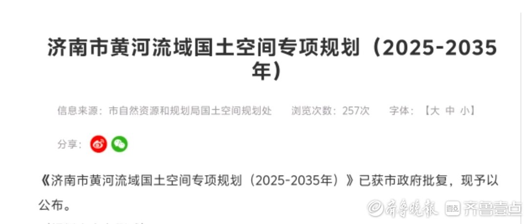 据了解,《规划》中流域统筹范围重点从优化国土空间格局、统筹流域和谐发展、推进流域国土空间高质量提升三个方面着手,构建主体功能明显、底线 约束有效、区域优势互补的国土空间开发保护格局。此外,系统推进流域生态保护与修复治理,统筹推进流域国土空间高质量发展,加强流域国土空间开 发保护和空间治理。 齐鲁晚报.齐鲁壹点于泊升 10月23日,济南市自然资源和规划局公布《济南市黄河流域国土空间专项规划(2025-2035年)》。规划范围包括流域统筹范围和核心管控区范围,规划期限 为2025年-2035年。 《规划》指出,至2035年,实现"黄河长久安澜空间支撑更为坚实、流域生态系统服务功能有效改善、绿色高质量发展水平显著提升、黄河文化影响力显 著扩大、沿黄区域协调发展格局全面形成"五个目标。 核心管控区范围重点聚焦济南沿黄地区,突出专项特点与流域系统性,明确断面划分与管控要求,解决"能否用、怎么用、用得好"的问题,从功能用途管 制、空间布局管控、建设实施管理三个方面做好管控引导,制定差异化管控策略,建立"控导结合"的管控机制,优化流域国土空间格局。 具体来看,《规划》提到,要统筹流域和谐发展,聚力做好水安全、水生态、水资源 ...