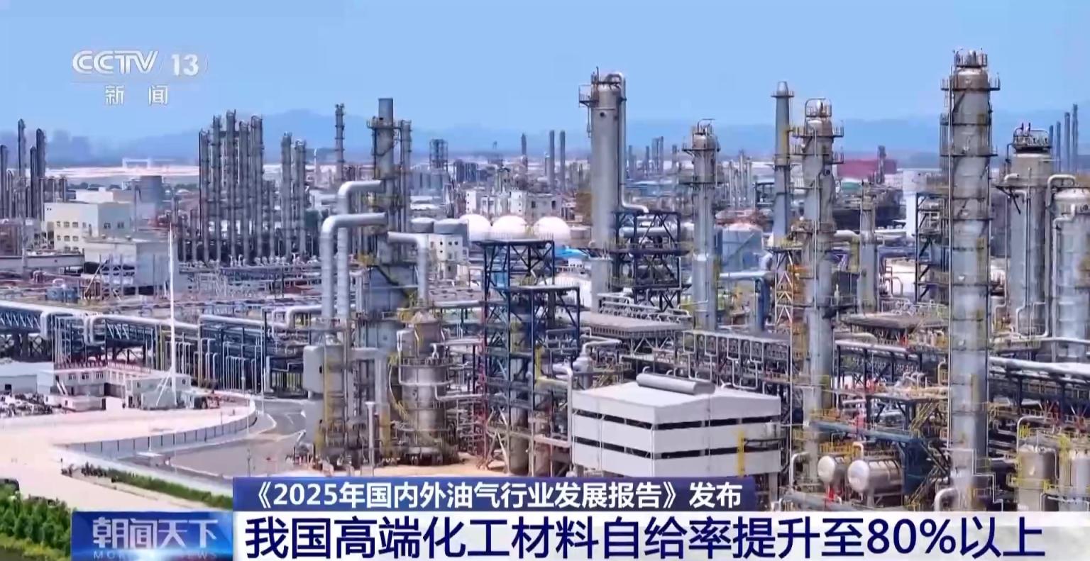 《2025年国内外油气行业发展报告》昨天(2月3日)在北京发布。报告显示,我国炼化产业高端化转型步伐加快,化工新材料发展迅速,高端化工材料自给 率提升至80%以上。 2025年油气勘探开发投资保持较高水平,油气储产量均创历史新高。原油产量2.16亿吨创历史新高;天然气产量(含煤制气)2638亿立方米,连续9年增产 超百亿立方米。我国炼油能力达9.39亿吨/年、乙烯产能达6270万吨/年,均居全球首位。随着中国车用能源结构加快转型及炼化一体化产能不断升级,石油 消费结构进一步调整,化工新材料发展迅速,高端化工材料自给率提升至80%以上。 报告预测,2026年我国石油消费小幅增长,天然气消费增速回升,炼油能力将继续增长。预计新增原油一次加工能力1500万吨/年,总能力超过9.5亿吨/ 年。"十五五"期间,进口替代、新兴产业配套及绿色可循环发展三大引擎将驱动新材料需求持续提升,预计2030年化工新材料需求量将突破6500万吨,年均 增速高达10%。 全球油气市场供需宽松 亚洲成核心增长极 《2025年国内外油气行业发展报告》指出,2025年全球油气市场供需宽松,国际油价波动下行,天然气市场由紧转松,区域能源消费分化 ...