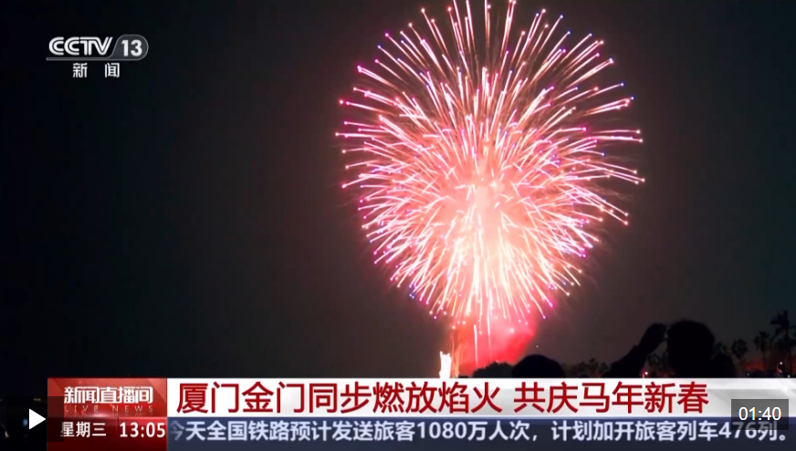 2026年海峡两岸春节焰火晚会大年初一晚上在厦门、金门两地同步上演,为两岸同胞献上一场视听交融的艺术盛宴,传递温暖祝福。 总台记者 陈庚:海峡潮涌,焰火传情。在厦门市思明区黄厝海滩附近,一簇簇焰火腾空而起、热烈绽放,与海对面金门上空的焰火交相辉映,将马年的奋 进气韵与两岸同胞情谊融入璀璨光影,绘就春满两岸的美好画卷。 作为两岸同庆新春的标志性活动,晚会紧扣"两岸、新春、马年"三大核心元素,精心规划燃放规模与呈现形式。其中,厦门会场总共燃放焰火4万余发,金 门会场共燃放焰火5千余发,延续"音乐+篇章式"燃放结构,层层递进诠释"马年启程奋进、厦金交相辉映、新春吉祥喜庆、万家团圆同庆"的美好内涵。 台胞 彭欧雅:有带家里人来,然后也有一些家人在台湾等候我们的视频,跟他们同步分享。我觉得很温馨,很温暖。因为我在厦门待了快30年,这次跟家 人聚在一起,第一次来这里看焰火,所以那个感觉是不一样的。我希望在新的一年,两岸同胞能够一起努力打拼,一起彼此认同,一起携手共进。 福建游客 黄冠淇:很壮观,很漂亮,烟花像一匹奔腾的马,马到成功。 从1987年开始,厦门和金门的乡亲共同燃放焰火,共庆新春,这一惯例一直延续到今天,逐渐成 ...