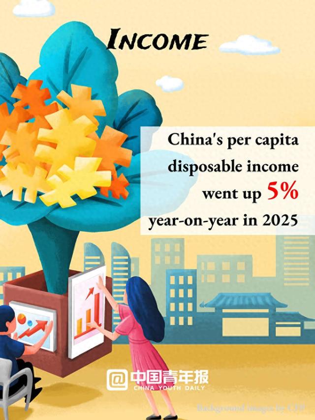Amid a continued economic recovery, people's incomes in China showed sustained growth in 2025 According to recently released data from the National Bureau of Statistics, the country's per capita disposable income stood at 43,377 yuan ($6,192) in 2025, marking a 5 percent year-on-year increase in nominal terms. The living standards of the Chinese population have progressed from mere subsistence to moderate prosperity in all areas. (Text/ Ma Ziqian, Picture/Jia Zifan) 来源:中国青年报客户端 Amid a continued economic rec ...