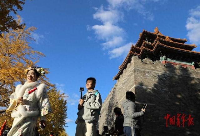 Core Viewpoint - The article highlights the popularity of the ginkgo trees at the southwest corner of the Forbidden City in Beijing during autumn, attracting many visitors, especially young people, for photography opportunities [2][4][12]. Summary by Sections - **Historical Significance**: The ginkgo trees were planted during the Yongle period of the Ming Dynasty, with the oldest tree being nearly 600 years old. They are valued not only for their aesthetic appeal but also as "living fossils" that represent an important part of Chinese civilization [2][4]. - **Social Media Influence**: The rise of social media has led to increased attention on the ginkgo trees, particularly from late October to early November, making them a trending topic online [2]. - **Visitor Engagement**: Many visitors, including those in traditional costumes, are seen taking photos against the backdrop of the golden ginkgo leaves, indicating a blend of cultural appreciation and modern social media engagement [6][10][20].