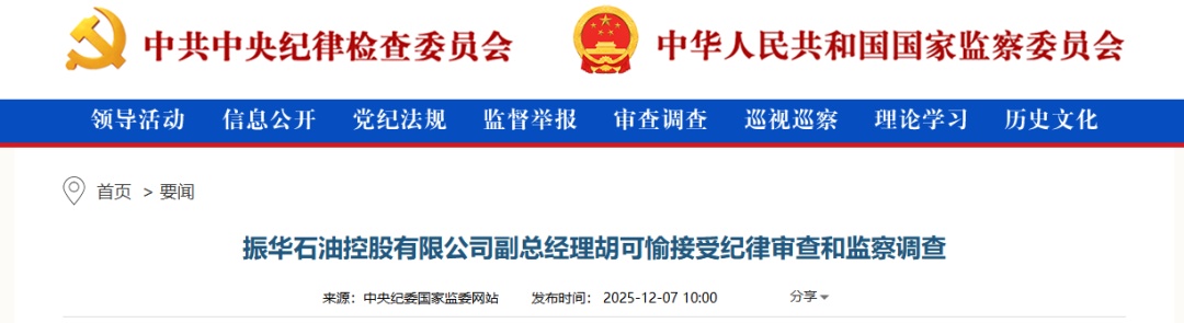 中央纪委国家监委网站12月7日消息,据中央纪委国家监委驻中国兵器工业集团有限公司纪检监察组消息:振华石油控股有限公司副总经理胡可愉涉嫌严重 违纪违法,目前正接受中央纪委国家监委驻中国兵器工业集团有限公司纪检监察组纪律审查和监察调查。 责任编辑:江蓬新 ...