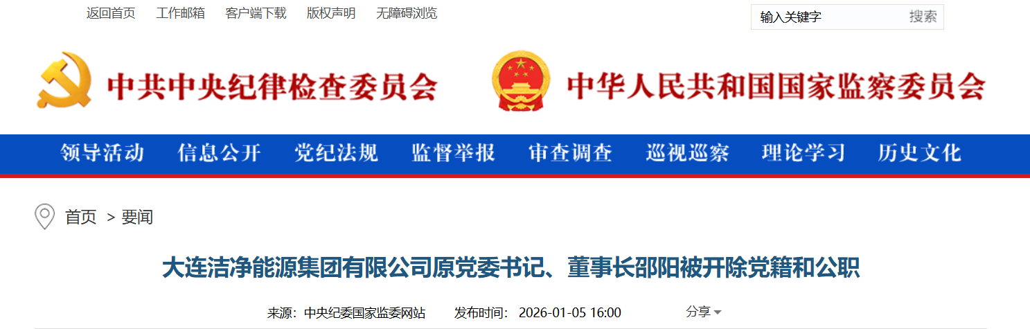 中央纪委国家监委网站讯 据大连市纪委监委消息:日前,经大连市委批准,大连市纪委监委对大连洁净能源集团有限公司原党委书记、董事长邵阳严重违 纪违法问题进行了立案审查调查。 经查,邵阳身为国有企业党员领导干部,丧失理想信念,背弃初心使命,与他人串供,对抗组织审查;无视中央八项规定精神,收受可能影响公正执行公务 的礼品、礼金,接受可能影响公正执行公务的宴请及旅游活动安排;违反组织原则,在职务晋升方面为他人谋取利益;借用管理和服务对象钱款,违规从事营 利活动,通过民间借贷获取大额回报;纪法底线失守,利用职务上的便利,为他人在款项拨付、工程承揽等方面谋取利益,非法收受巨额财物。 邵阳严重违反党的政治纪律、组织纪律、廉洁纪律、生活纪律,构成严重职务违法并涉嫌受贿犯罪,且在党的十八大后不收敛、不收手,性质严重,影响恶 劣,应予严肃处理。依据《中国共产党纪律处分条例》《中华人民共和国监察法》《中华人民共和国公职人员政务处分法》等有关规定,经大连市纪委常委 会会议研究并报大连市委批准,决定给予邵阳开除党籍处分;由大连市监委给予其开除公职处分;终止其大连市第十三次党代会代表资格;收缴其违纪违法所 得;将其涉嫌犯罪问题移送检察机关 ...
