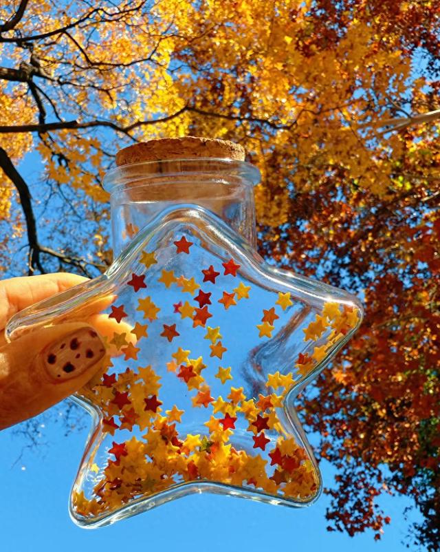 看到很多人喜欢孩子的这套"落叶限定装备",莱宝妈妈在社交平台上分享了制作方法:披风需要先找一 个干洗防尘袋,裁剪出披风的基底,在基底上平铺双面胶,间距3到4厘米横向粘贴银杏叶,叶子错落部 分要向外延伸增加层次感,领子部分要过肩反向粘贴叶子。最后,用胶带贴上挂绳,确认整体粘贴完 整,银杏披风就制作完成。 转自:北京日报客户端 这两天,大风裹挟着寒意扫过街巷,却也吹落了满城金黄。一群乐于动手实践的人没有让落叶"随风而 去",反而开动脑筋,用落叶做出披风、"魔法帽"、许愿瓶等"出片神器"。一系列充满创意的落叶手作 引发了网友的围观和点赞,为这个初冬增添了几分别样的温暖和趣味。 刘傲制作的"星星瓶"(来自"Judy_ao") 身披金灿灿的银杏叶斗篷,头戴一顶别致的"魔法帽",小朋友莱宝在地坛公园满地金黄的落叶中一亮 相,很快就成了全场焦点。往来游客纷纷驻足,举起手机、相机记录下这灵动的一幕。"好可爱,人气 也超高。""拍到啦,萌翻了。"社交媒体上,不少网友晒出了偶遇莱宝时拍下的各种角度的可爱照片。 (来自"是小图图呀") 陈女士制作的"许愿瓶"(来自"爆富喵喵") 刘傲带去地坛公园的"星星瓶"也成了"出片神器"。将捡 ...