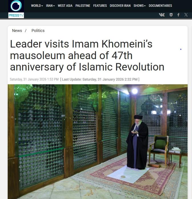 图片来源:伊朗媒体报道截图。 (文章来源:中国新闻网) 中新网2月1日电据伊朗媒体报道,当地时间1月31日,伊朗最高领袖哈梅内伊出席了在首都德黑兰霍梅 尼陵举行的伊朗伊斯兰革命胜利47周年庆祝活动。 ...