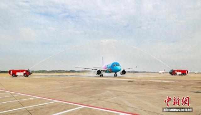 自12日起,南航C919型国产大飞机将常态化加入广州至南京"南航快线"运营,每日执飞两个往返航 班。随着C919型国产大飞机的加入,广州至南京"南航快线"已实现每日8班高密度运营,航班时刻覆盖 8:15至23:15,以满足旅客出行需求。(完) 南航启用C919型国产大飞机首飞广州至南京航线。当日飞机降落在南京禄口国际机场、穿过"水门"。 房天翔 摄 执行该航线的C919型国产大飞机采用164座三舱布局,包含8个公务舱座位、18个明珠经济舱座位以及 138个经济舱座位。 中新网南京1月12日电 (张南山 刘鹏飞)12日,中国南方航空股份有限公司(简称"南航")启用C919型国产 大飞机"大美湾区号"彩绘机首飞广州至南京航线,标志着国产大飞机在该航线的运营拉开序幕。 1月12日, ...