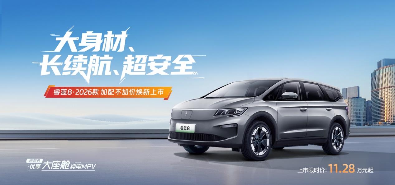 Core Viewpoint - The automotive consumption market is increasingly characterized by a trend of "rational consumption," where practicality is the core principle for users when purchasing vehicles. The new Rui Blue 8 2026 model aims to meet the dual demands of practicality and quality in the pure electric MPV segment, offering a comprehensive solution without compromise [1][18]. Group 1: Product Features - The Rui Blue 8 2026 model features significant upgrades in space, range, power, and comfort, achieving a "more for less" proposition that redefines the value ceiling for electric MPVs priced around 100,000 yuan [3][7]. - The vehicle is equipped with a high-performance 68.03 kWh lithium battery, providing a comprehensive range of 545 km, which is significantly above the class average. This range alleviates range anxiety and supports a cost-effective operation of approximately 0.07 yuan per kilometer [3][5]. - The power system has been upgraded to a 120 kW highly integrated five-in-one electric drive, enhancing power output and providing a smoother acceleration experience for both urban and highway driving [5]. Group 2: Comfort and Space - The Rui Blue 8 2026 model offers a spacious interior with a length of 4812 mm, width of 1909 mm, and a wheelbase of 2807 mm, surpassing competitors in providing a roomy cabin suitable for family outings and business receptions [9]. - Two seating configurations are available: a five-seat version with a trunk capacity of 819 L, accommodating up to nine 20-inch suitcases, and a seven-seat version (2+2+3) designed for comfort and easy access for all passengers [10][12]. - The vehicle includes a heat pump air conditioning system that improves energy efficiency by 30% and enhances low-temperature range by 25%, ensuring stable operation even in extreme cold [5]. Group 3: Safety and Pricing - The Rui Blue 8 2026 model incorporates multiple intelligent safety features, including lane departure warning and a new ONEBOX braking system, enhancing safety during various driving conditions [14]. - The model is competitively priced starting at 127,800 yuan, with a limited-time introductory price of 112,800 yuan, along with promotional offers such as cash discounts and financing options [16]. - The vehicle targets new-generation family users and pragmatic entrepreneurs, providing a practical yet quality-oriented electric travel solution [7][18].