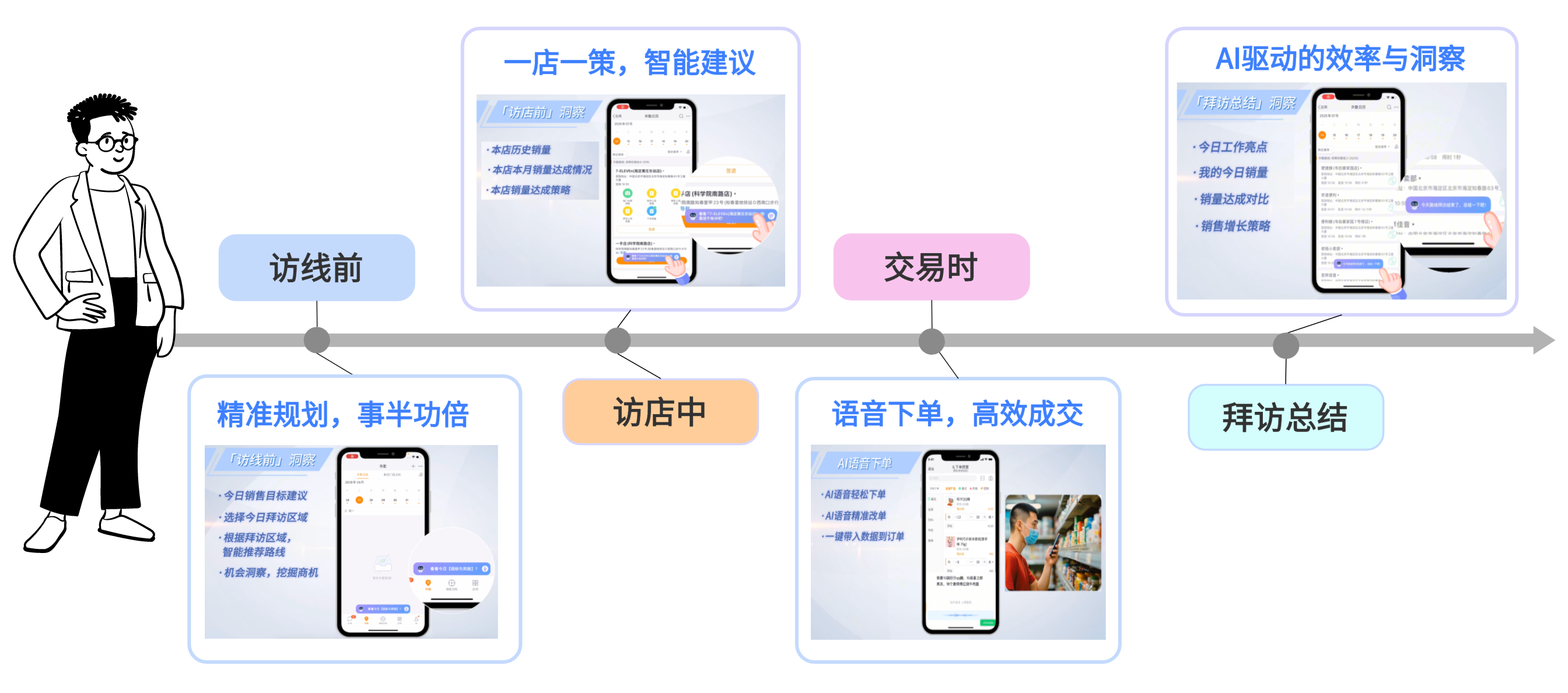 AI到底为消费品企业带来了什么落地的价值呢? 我们相信这是各家消费品企业都在思考的问题。万变不离其宗,一切的技术终究要为业务服务。我们思考,AI做为一项新技术,必需更好更快地解决消费 品行业实际的业务问题,从而带来新的业务价值。带着这种AI一定要服务于业务场景的理念,我们研发出了AI访销大脑,利用AI大模型这种强大的能力, 结合到消费品最高频的销售场景中,提升业务员的销售效率。 纷享销客AI访销大脑,如同您的专属智能副驾,贯穿于消费品一线销售业代人员一天拜访工作的全业务流程:从访线前的精准路线规划,到访店中的智能 决策;从交易中的极速下单,再到拜访后的高效总结录入与数据复盘,实时提供全方位助力,确保每一次拜访都能"真"提效,提"真"效。 01、访线前:精准规划,事半功倍 业代在一日工作前,可用AI智能规划今日拜访路线及计划,洞察今日潜在机会点与风险点,让每日工作都目标明确,高效有序,充满策略与先机。 场景案例:业代小王熟练地打开了"AI访销大脑",准备开始一天的拜访工作。小王:"帮我看看拜访路线,生成装车产品清单。" AI访销大脑迅速响应:"今日路线共15家门店, 已根据路线上的门店及今日销售目标综合分析, ...