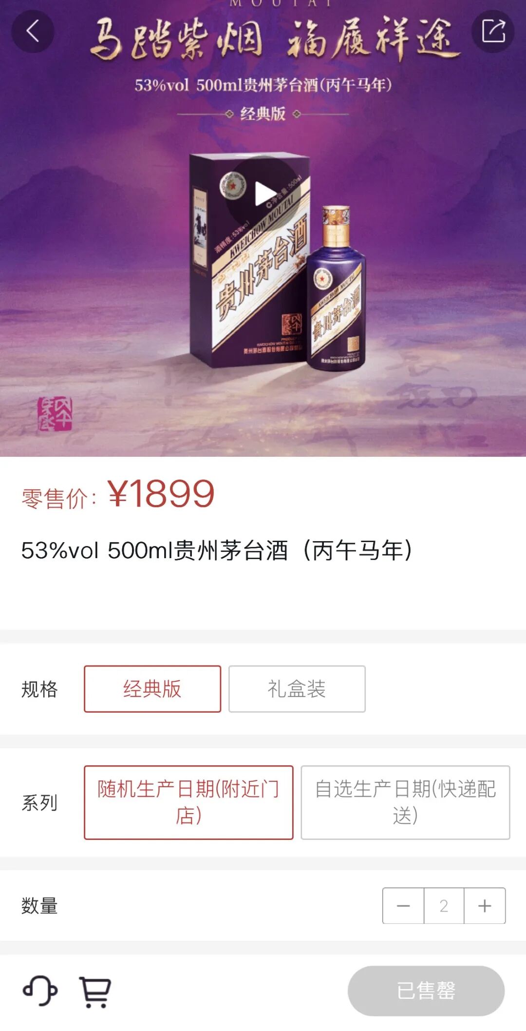 1月7日9时,贵州茅台(600519)新品马年生肖酒再次上演"上线秒售罄"的盛况。 昨天,马年生肖茅台正式在i茅台app上市发售,在白酒行业调整加剧的大背景下,变化正在发生——过去五年生肖茅台的官方指导价都是2499元/瓶, 今年购买门槛有所降低:提供了经典版、礼盒装和珍享版三个版本,官方定价分别为1899元/瓶、3789元/盒(两瓶)和2499元/瓶。其中,经典版和礼盒装 还支持自选生产日期。 从二级市场表现来看,目前经典版马年生肖茅台普遍溢价50—100元/瓶,珍享版则因投放量较小,身价暴涨至超6000元。 水芙蓉/摄 今年的马年生肖茅台会延续以往的高投放量吗? 从产品结构来看,生肖酒被视为茅台"金字塔"系列中的"塔腰"产品,兼具消费与收藏需求任务。重要的是,今年茅台明确提出会"尽努力避免价格炒 作",取消了分销机制、并将飞天茅台上线i茅台app,以激发真实消费需求,提高开瓶率。 马年春节将至,除了茅台,五粮液、洋河、泸州老窖、古井贡酒等多家头部酒企已推出生肖酒产品。 | 相较于普通版飞天茅台,生肖酒具有一定的收藏和文化属性。 | | | --- | --- | | 值得一提的是,上一轮马年茅台生肖酒(2 ...