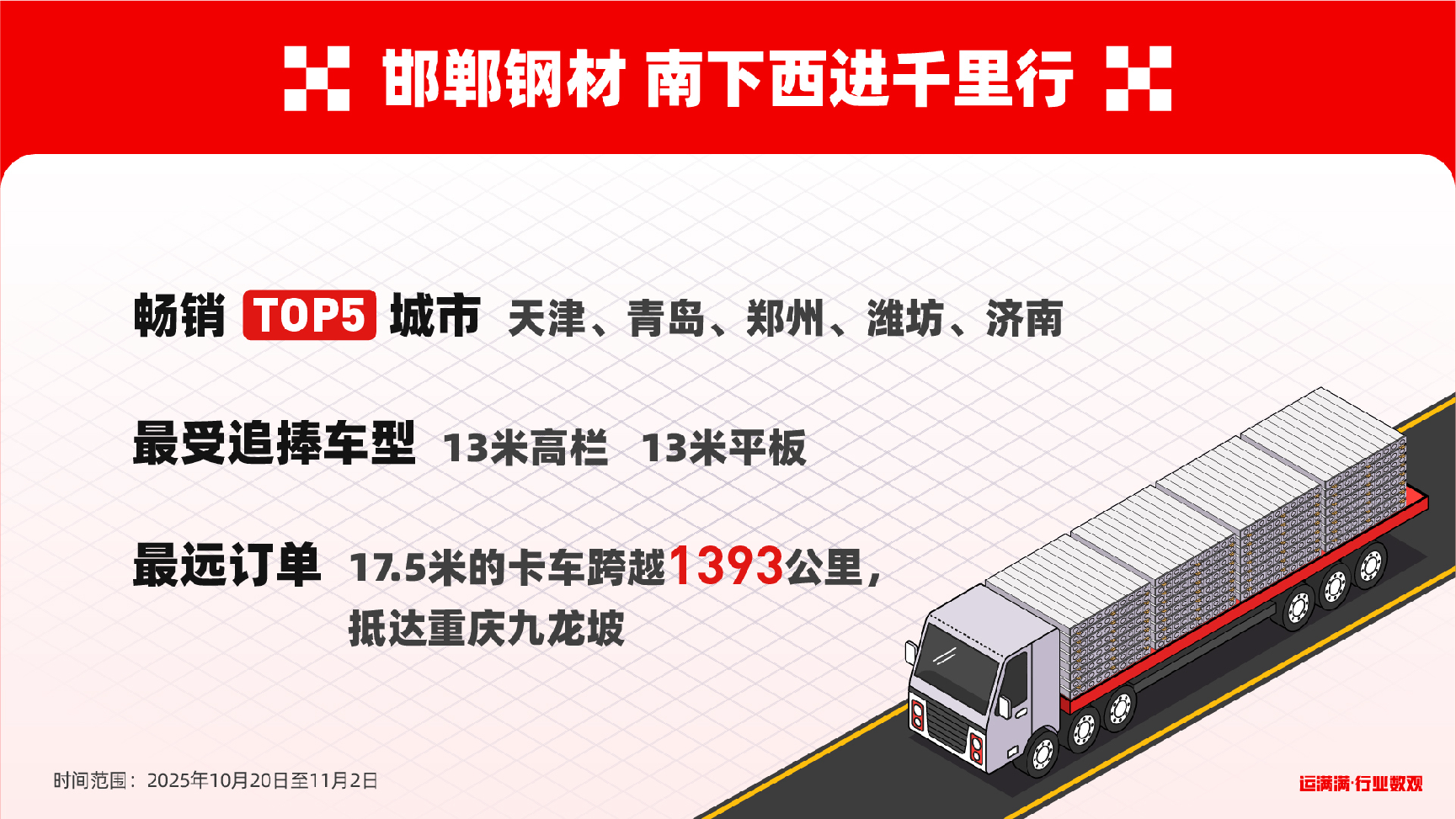 2025年双十一大促期间,数字货运平台运满满发布的货运数据显示,在"国补"政策与电商大促的双重推动下,全国多座城市呈现出"产业输出"与"消费升 级"双向驱动的强劲态势。邯郸、菏泽、台州、西安、邢台、徐州六座城市作为区域经济样本,其货运数据不仅反映出消费信心的提振,更凸显出智慧物流 在畅通经济循环、赋能区域发展中的关键作用。 产业输出强劲,区域特色经济"货畅其流" 双十一期间,各城市依托自身产业优势,实现特色产品"走出去"。形成一幅多点开花、货畅其流的区域经济图景。 作为华北重要的工业基地,邯郸在双十一期间发货总量环比上涨29%,收货总量环比增长25%。这一"进出同频"不仅折射出当地产业的无限活力,更凸显了 消费升级与政策赋能的双重效应。钢材发货量同比上涨46%,平均运距达580公里,显示出其市场辐射范围的持续扩大。 与此同时,徐州也大量接收米类麦仁粗粮、饲料等,形成了"大进大出"的粮食加工与贸易格局,巩固了其在区域农业经济中的核心枢纽地位。除了农业,徐 州展现了其坚实的产业基础与强大的区域辐射力。建材位列发出品类榜首且同比大幅增长,金属钢材、零件配件同样名列前茅。一项特别的记录诞生于此期 间——一批绿化树乔木 ...