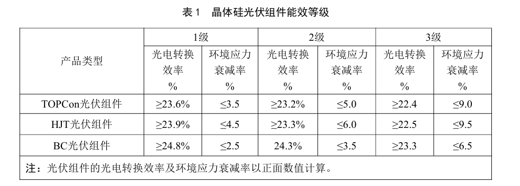 "光伏行业肯定要淘汰一定的落后产能,在组件、电池端,主要参考指标是同样版型上的功率。"上海交通大学教授、上海交通大学太阳能研究所 所长沈文忠于11月18日在第八届中国国际光伏与储能产业大会上接受经济观察报等媒体采访时表示。 功率是光伏电池和组件的重要参数,一般而言,功率越高,光伏板发电量越多。 沈文忠表示,相关部门正在制定光伏组件标准,按照功率大小分为三个等级,划定的等级将成为国央企招投标采购的重要标准。 今年9月11日,国家市场监督管理总局、国家标准化管理委员会发布《晶硅光伏组件和逆变器能效限定值及能效等级(征求意见稿)》,其中规 定拟将光伏组件按照技术路线分为TOPCon(隧穿氧化层钝化接触电池)、BC(背接触电池)和HJT(异质结电池)三类,每类又划分三个等 级,区分等级的参数主要是光电转换效率(决定功率的参数)。 | | 1级 | | 2级 | | 3级 | | | --- | --- | --- | --- | --- | --- | --- | | 产品类型 | 光电转换 | 环境应力 | 光电转换 | 环境应力 | 光电转换 | 环境应力 | | | 效率 | 袁减率 | 效率 | 袁减率 | ...