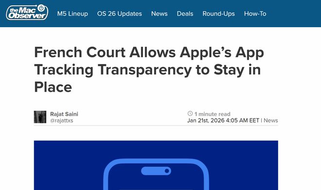 来源:环球网 【环球网科技综合报道】1月21日消息,据The Mac Observer报道,巴黎司法法院近日作出裁决,驳回法 国广告行业协会要求暂停苹果"应用追踪透明度"(ATT)功能的诉讼请求,这一旨在强化用户隐私保护 的功能将继续在法国合法实施,标志着苹果在用户数据控制权相关法律纠纷中取得关键胜利。 此前,法国竞争监管机构曾以苹果利用ATT功能涉嫌滥用市场地位为由,对其处以1.5亿欧元罚款。广 告行业则持续对该功能表达不满,认为其改变了传统移动广告商业模式,导致用户同意追踪比例大幅下 降,进而造成出版商和广告平台收入缩水。法国广告和数字贸易协会联盟因此提起诉讼,主张ATT功能 具有"反竞争性",认为苹果对自家应用未施加同等限制,存在"双重标准",要求在法国境内禁止该功能 运行。 针对相关指控,苹果公司明确反驳称,Siri、苹果地图、iMessage等自家服务在设计之初就不具备跨平 台数据关联能力,不存在差异化对待的情况。法院经审理认定,广告行业关于ATT功能损害其业务的指 控缺乏充分依据,不足以支持暂停该系统的诉求,最终作出驳回原告诉请的裁决。 苹果公司对此次裁决表示欢迎,在向法国媒体《La Tribun ...