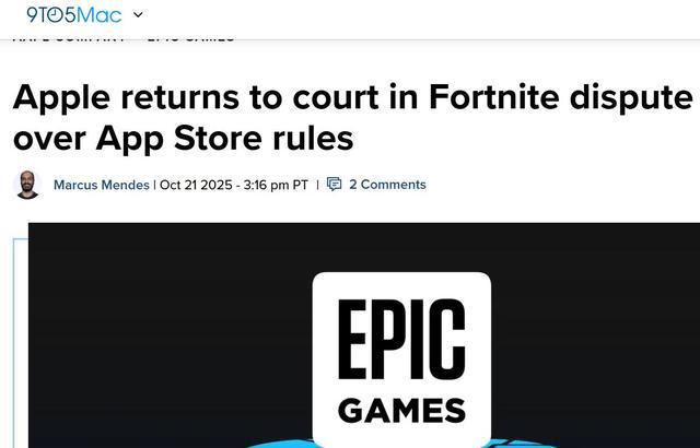 外媒:苹果与Epic因App Store佣金问题再次对簿公堂